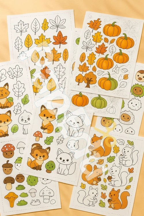 „Jesienne wycinanki i kolorowanki” to kreatywny zestaw PDF, który łączy gotowe elementy z przestrzenią do twórczej zabawy.