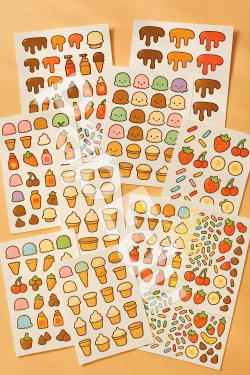 3 arkusze składników (gałki, posypki, polewy, dodatki)