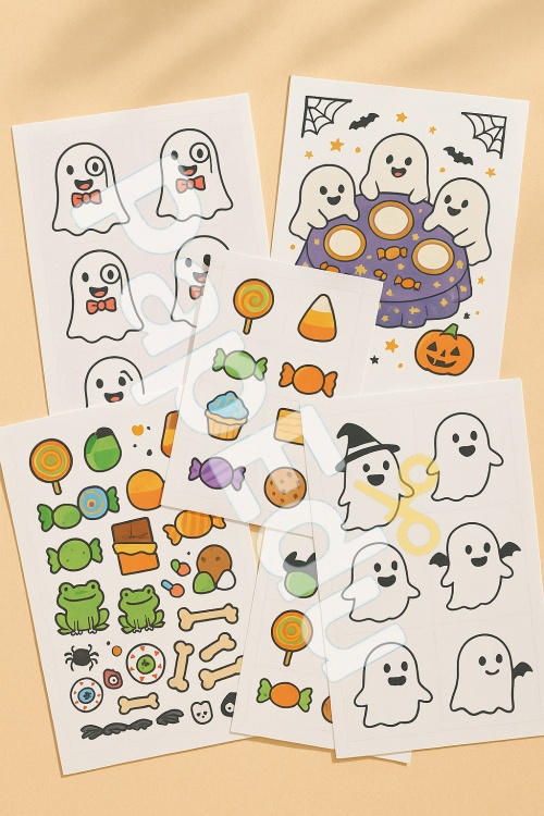 Pokoloruj tła duszków, dodaj pajęczynki, nietoperze lub dynie.